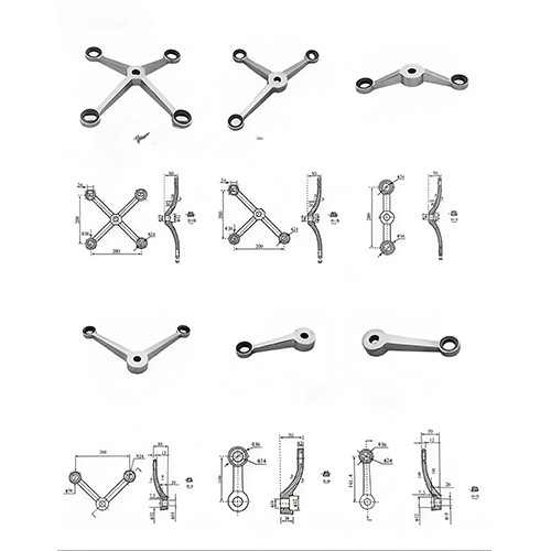 As part of our glass spider fittings series, this product is widely applied in glass curtain walls, canopies, skylights, atriums, and structural façades. Architects and contractors often search for it using terms like “3 arm spider fitting,” “3-way spider clamp,” “glass spider fittings,” and in Brazil “ferragem spider para vidro.”