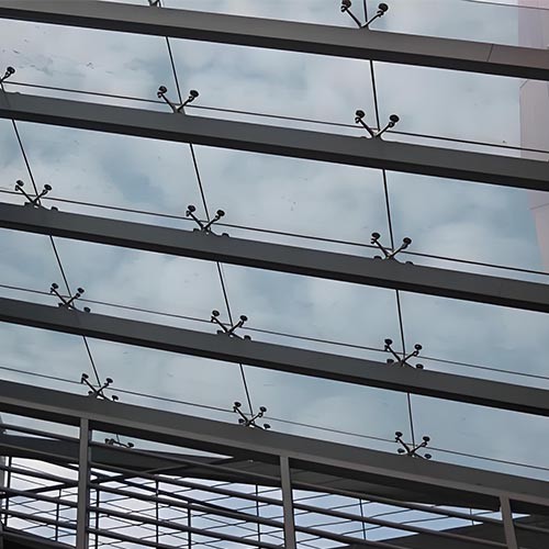 Glass Fin Connections: This fitting is widely used to connect vertical glass fins (mullions) which support the main facade against wind loads.