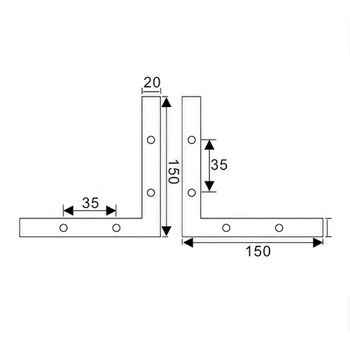 Dimensions: Arm Length 150mm, Clamp Channel to Bottom Edge 20mm (Refer to engineering drawing)