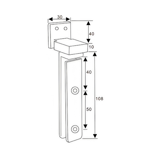 Wall/Header Mounting Base: Width 30mm, Height 40mm, pivot projection 10mm.