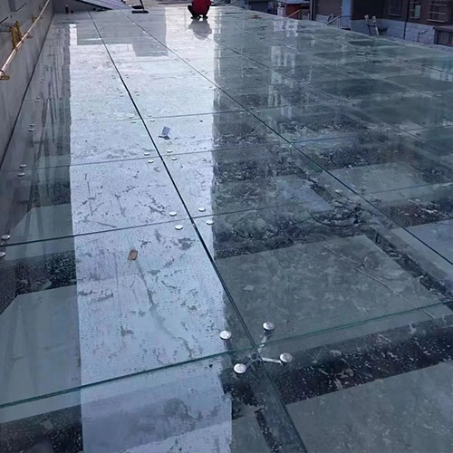 When the worker stepped on the glass, viewers could clearly see the slight downward flexing of the panel. Under normal circumstances, if the glass were installed directly on a rigid steel structure without flexible connectors, such movement would transmit stress unevenly, increasing the risk of cracking or sudden failure. However, with the stainless steel spider fittings connecting the glass to the steel frame, the system exhibited controlled movement.