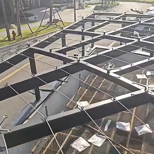 Connection plates or embedded parts are reserved on the beams so that spider fittings can be fixed precisely at the desired locations.